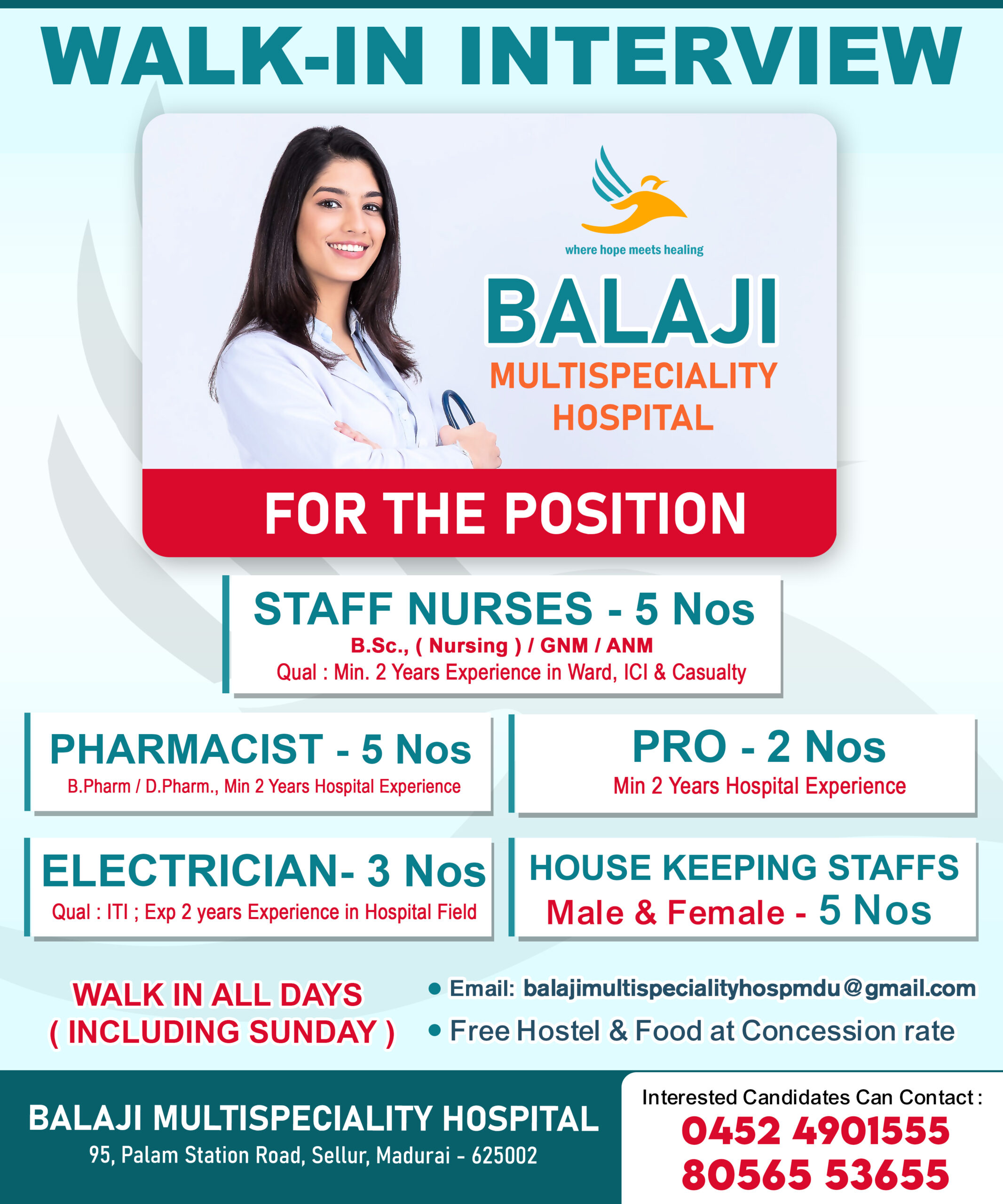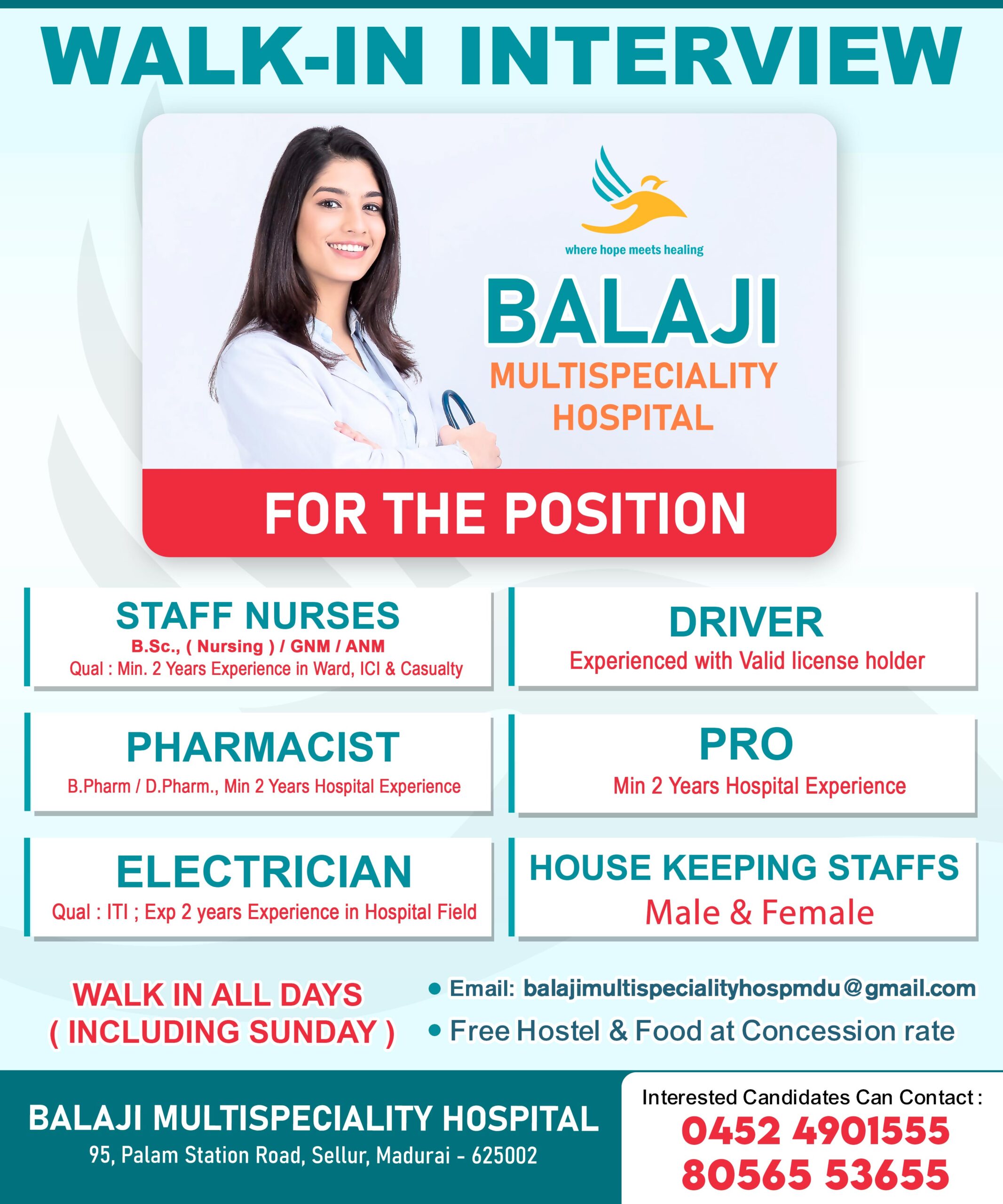 Balaji Multispeciality Hospital is one of the best multispeciality hospital in Madurai. The hospital has a dedicated and experienced medical team with an advanced medical technology which ensures the best patient care with an affordable cost. We specialized in Accident & Trauma, Orthopaedics, Emergency Medicine, Obstetrics & Gynaecology, General Surgery, General Medicine, Vascular Surgery, Paediatrics, Cardiology, ENT, Neurology & Pulmonology. We have High-Tech Operation Theatres (OT) at the Hospital is made up of major & minor OTs which are specifically designed to meet surgery needs in a high standard sterile environment. It is maintained by highly trained and dedicated OT team. We provides round-the-clock Pharmacy, X-Ray, Laboratory services & Ultrasound scan facility with a state-of-the art equipments by a well trained staffs. We have Intensive Care Unit (ICU) with facilities like Multichannel Monitors, Pulse Oxymeters, Infusion Pumps, Ventilators, Centralised Oxygen and Suction. Specially trained Staff and Medical Officers are available round the clock. We have 24 X 7 Emergency & Ambulance service available.